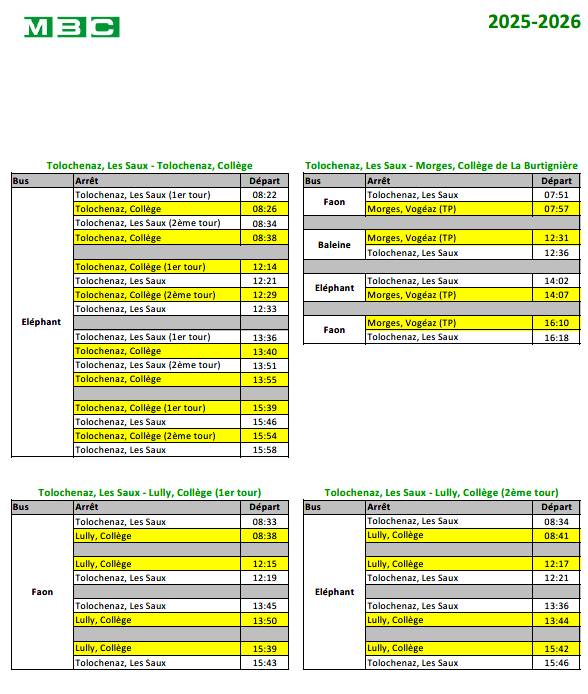 MBC / Lignes scolaires