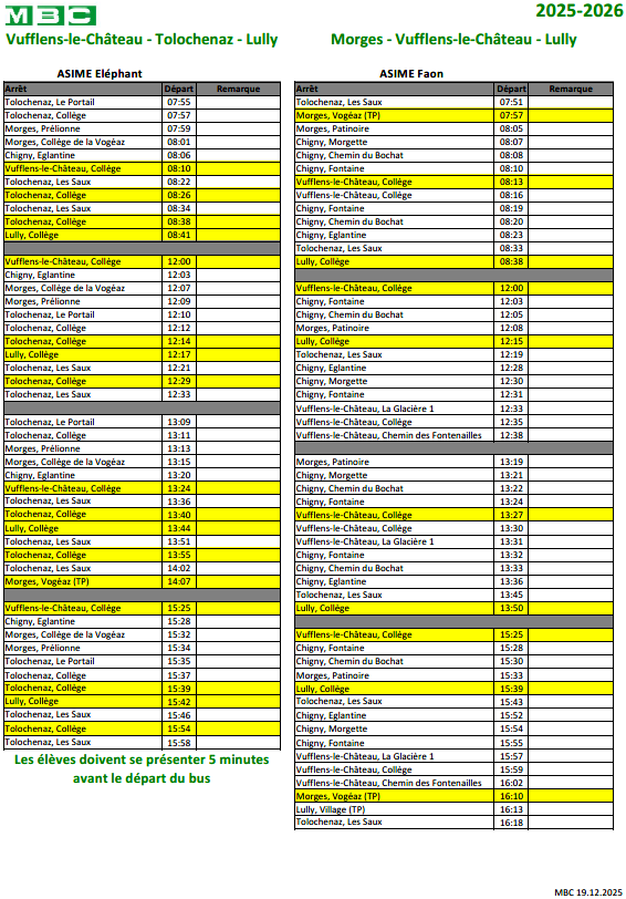 Nouvel horaire MBC dès le lundi 19 décembre 2025 !