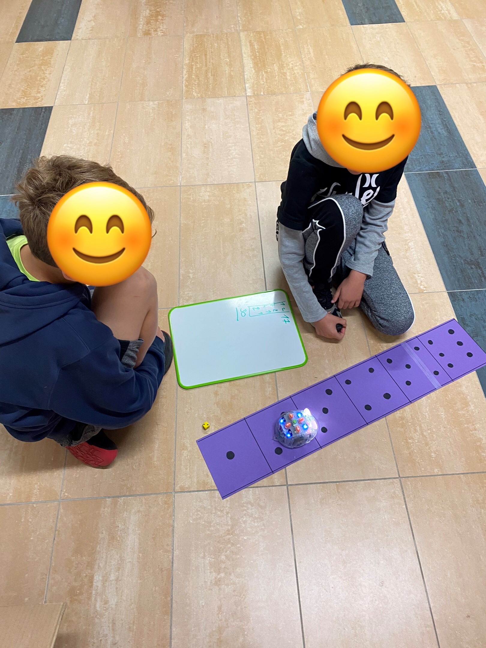 Voici quelques images prises dans le cadre du bain informatique où les élèves apprennent à programmer de petits robots appelés BlueBot.