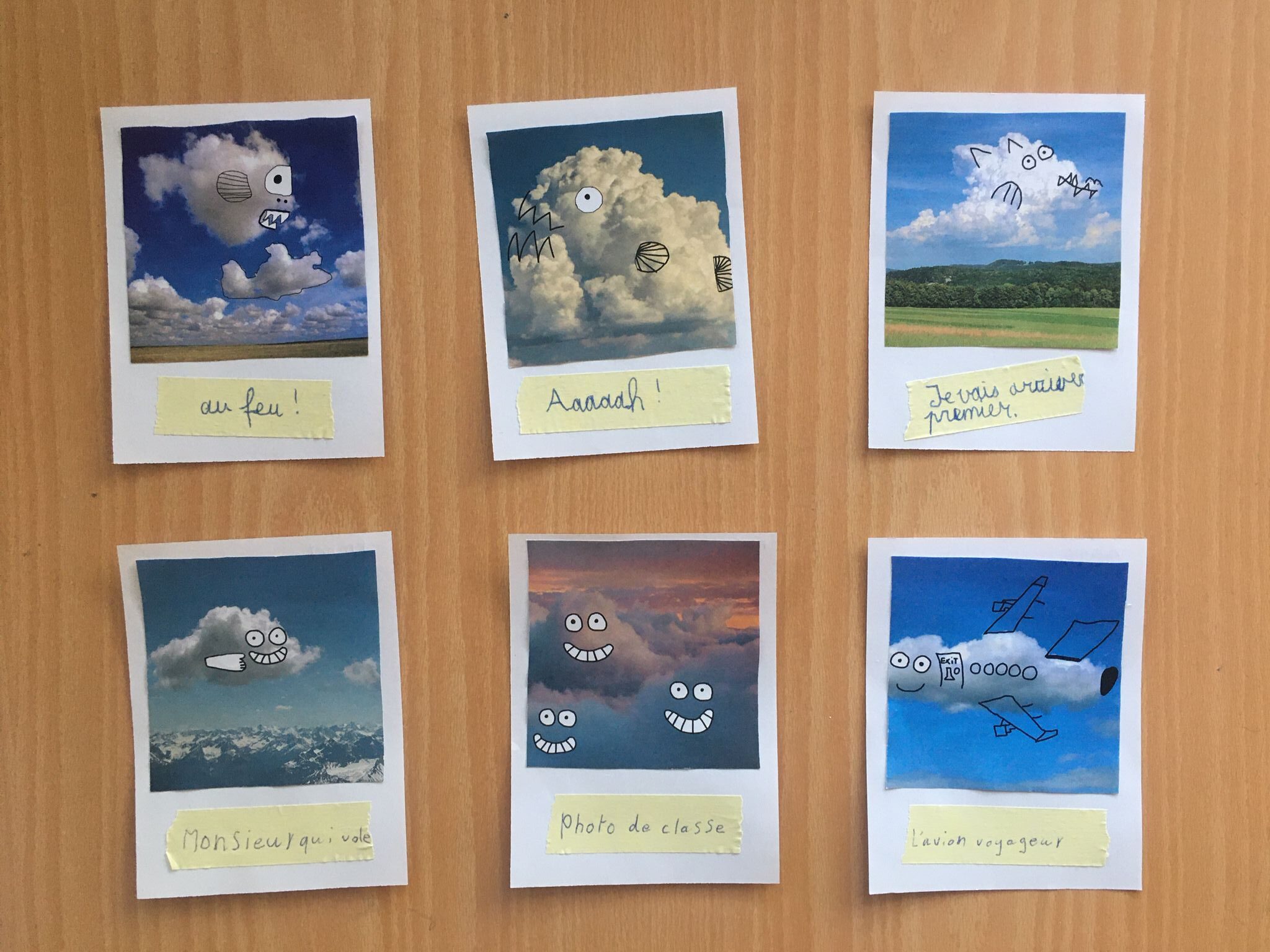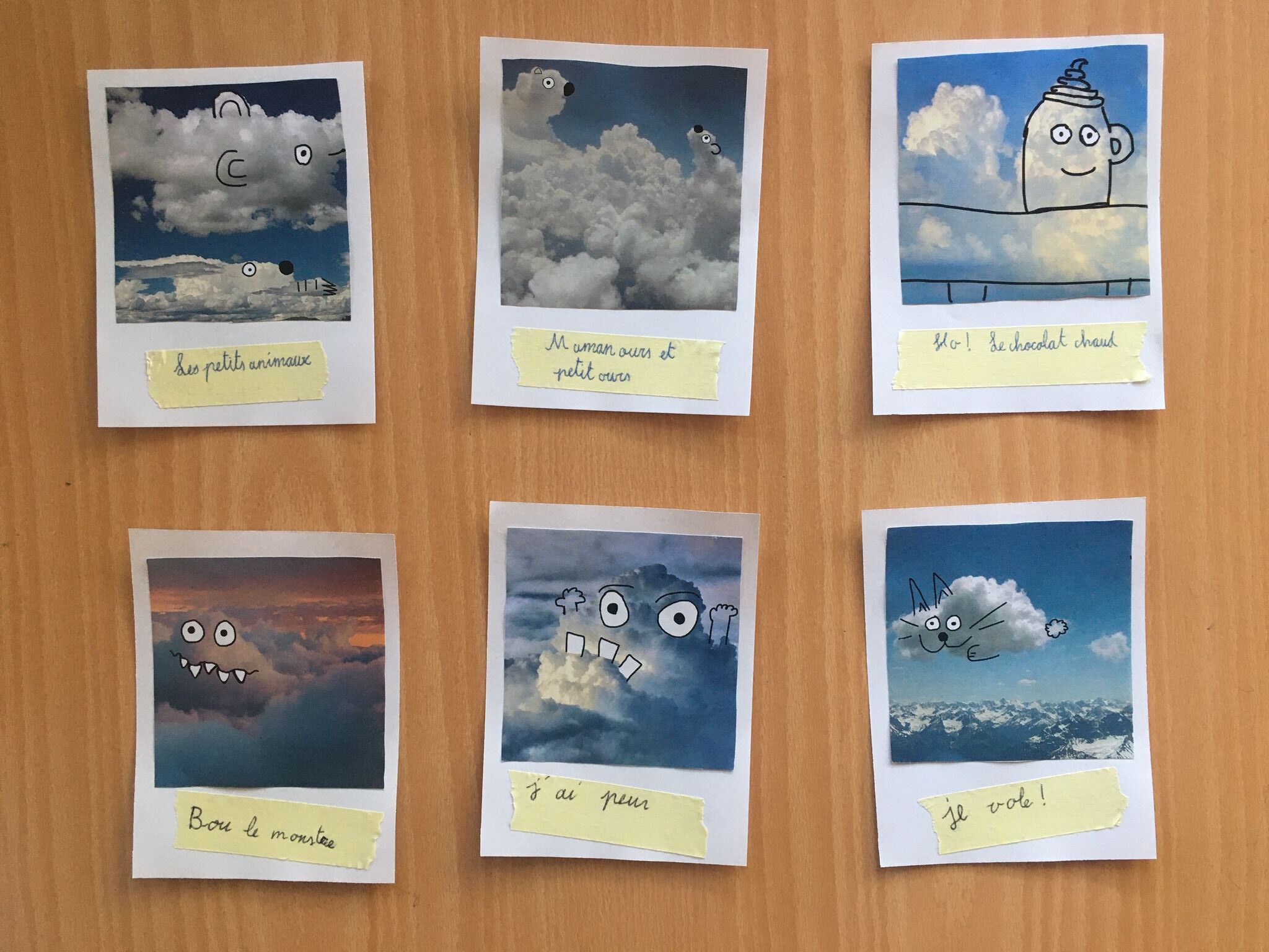 Joli projet d’une classe de 5P, les élèves ont dessiné sur les photos représentant des nuages à l’aide de tablettes !